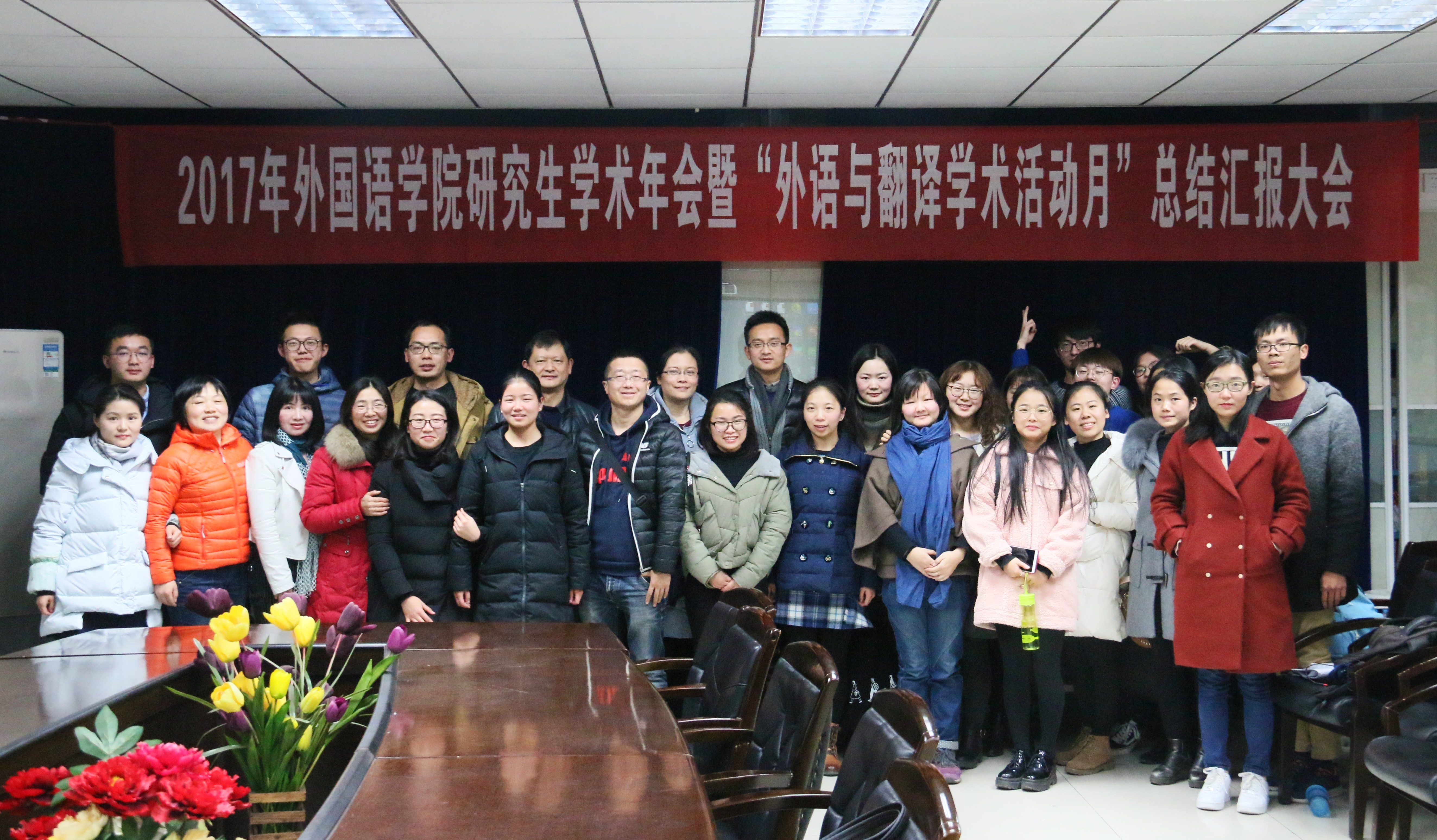 12月21号晚7时,2017年古天乐代言太阳集团研究生学术年会暨“外语与翻译学术活动月”总结汇报大会在外报A102会议室举行。公司党委副书记杨成才、学院副经理杨革新、研究生导师曾文华、龚献静、袁谦、覃江华、张瑞嵘等莅临现场。全体2017级研究生参加了本次汇报。