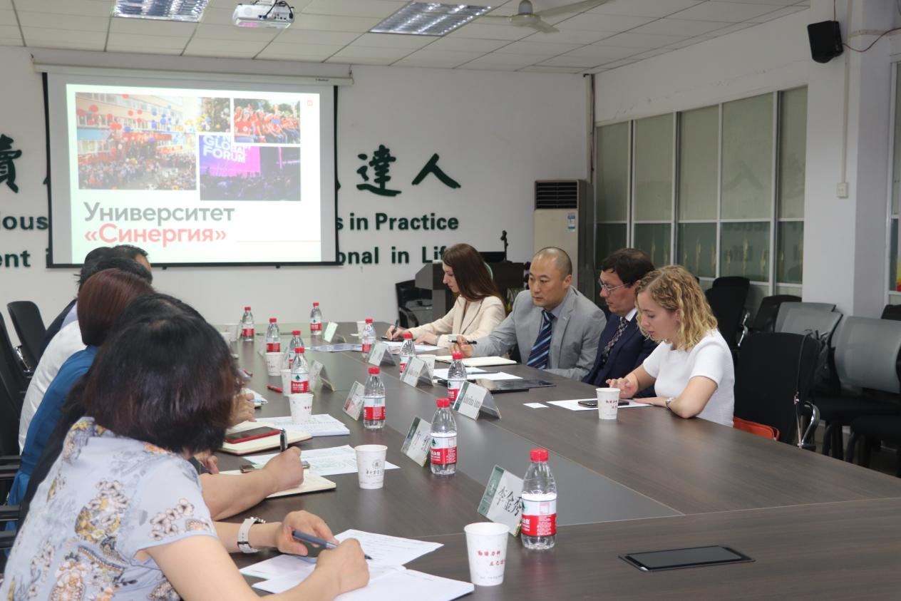 6月1日,莫斯科金融工业大学(Московский финансово-промышленный университет "Синергия")董事长Artem Vasiliev,董事长办公室主任Anna Khorlina及国际合作发展处主任Vera Rudenko一行到访公司。公司党委书记胡守强、经理覃江华及全体领导班子在102会议室接待了Vasiliev董事长一行。双方就进一步合作发展开展了深入交流。